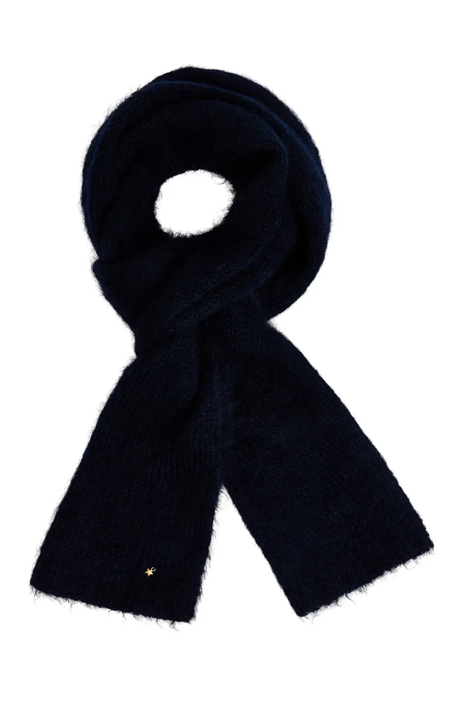 Aussi douce que réconfortante, vous aimerez nouer l’écharpe Charlette autour de votre cou cette saison. En kid mohair et laine, son élégante simplicité s’accordera à tous vos looks. • Écharpe longue • Finitions en bord-côte • Écharpe réalisée dans un nouveau fil italien du groupe « Fluffy » en kid mohair d’Afrique du Sud et laine mérinos extrafine d’Australie certifié RMS & RWS. Fil au toucher très doux, gonflant et duveteux. • Coloris Marine : un bleu nuit intense • Modèle dessiné à Paris par notre styliste • Longueur : 200 cm – Largeur : 35 cm • Conseil style : portez-la sur un manteau long ou une doudoune avec le bonnet Chami assorti