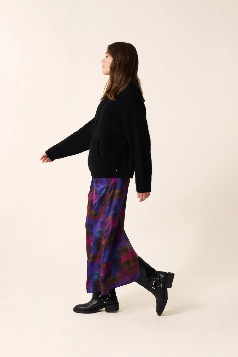 Une ligne classique stylisée d’un détail plissé et d’une longue fente au dos, la jupe longue Evali s’impose dans notre dressing hivernal. Animée d’un imprimé inédit, cette création à porter avec un pull en mohair ou un blazer pour un look plus habillé sera votre meilleure alliée cette saison. • Jupe longue imprimée légèrement évasée en base • Lien de serrage devant à effet plissé • Longue fente au dos • Fermeture zippée • Imprimé exclusif Des Petits Hauts « Anoki » présentant de grands carreaux diffus comme aquarellés aux tonalités automnales • Modèle dessiné à Paris par notre styliste • Longueur : 86,5 cm pour une taille 1 • Kryzia mesure 1m70 et porte une taille 1 • Conseil style : portez-la avec un pull fuchsia et des bottes à talon pour un look city ultra contemporain