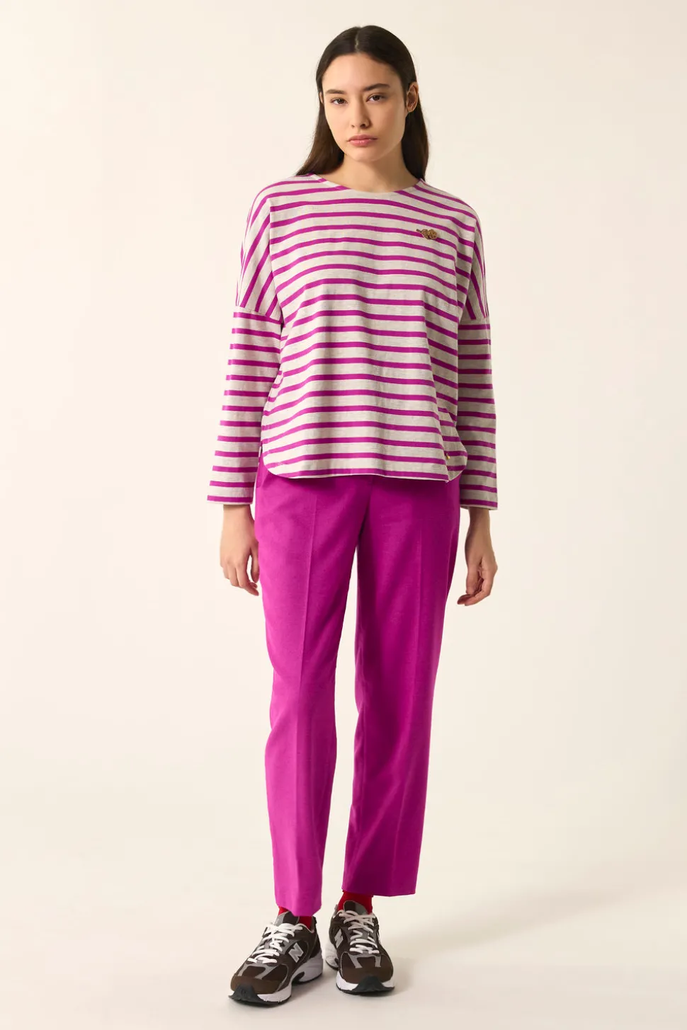 Incontournable Des Petits Hauts, notre iconique marinière Filly séduit saison après saison. Déclinée dans des coloris coordonnés à la collection et modernisée par une coupe oversize, elle est accessoirisée d’une jolie broche.• Marinière oversize manches longues• Encolure ronde dégagée• Emmanchures décalées• Base fendue• Broche incluse différente en fonction des coloris• Coton Oeko-Tex epais et respirant • Coloris Beige et Lupin : un beige neutre et un rose fuchsia• Modèle dessiné à Paris par notre styliste• Longueur : 60 cm pour une taille 1• Sofia mesure 1m70 et porte une taille 1• Conseil style : portez-la avec le jean mum louisette 1 et la veste en jean Loubia pour un look décontracté