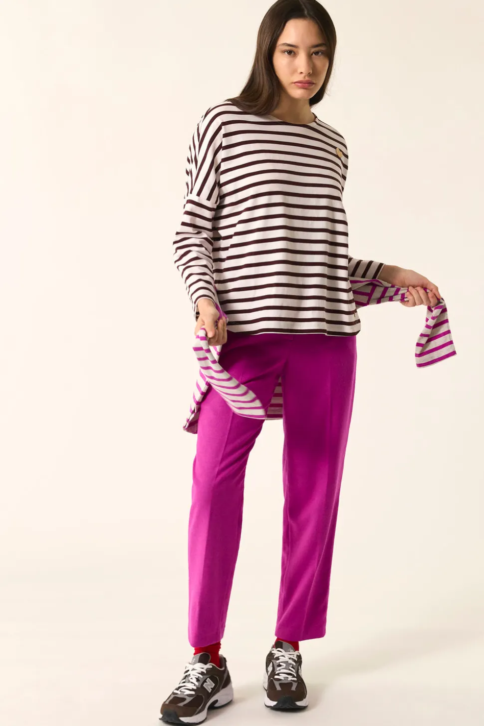 Incontournable Des Petits Hauts, notre iconique marinière Filly séduit saison après saison. Déclinée dans des coloris coordonnés à la collection et moddernisée par une coupe oversize, elle est accessoirisée d’une jolie broche.• Marinière oversize manches longues• Encolure ronde dégagée• Emmanchures décalées• Base fendue• Broche incluse différente en fonction des coloris• Coton Oeko-Tex epais et respirant • Coloris Écru et Ours : un blanc écru et un marron foncé• Modèle dessiné à Paris par notre styliste• Longueur : 60 cm pour une taille 1• Sofia mesure 1m70 et porte une taille 1• Conseil style : portez-la avec le jean mum louisette 1 et la veste en jean Loubia pour un look décontracté