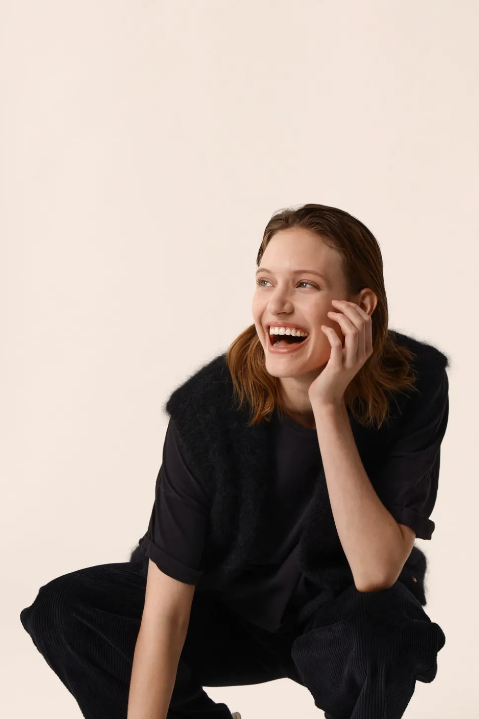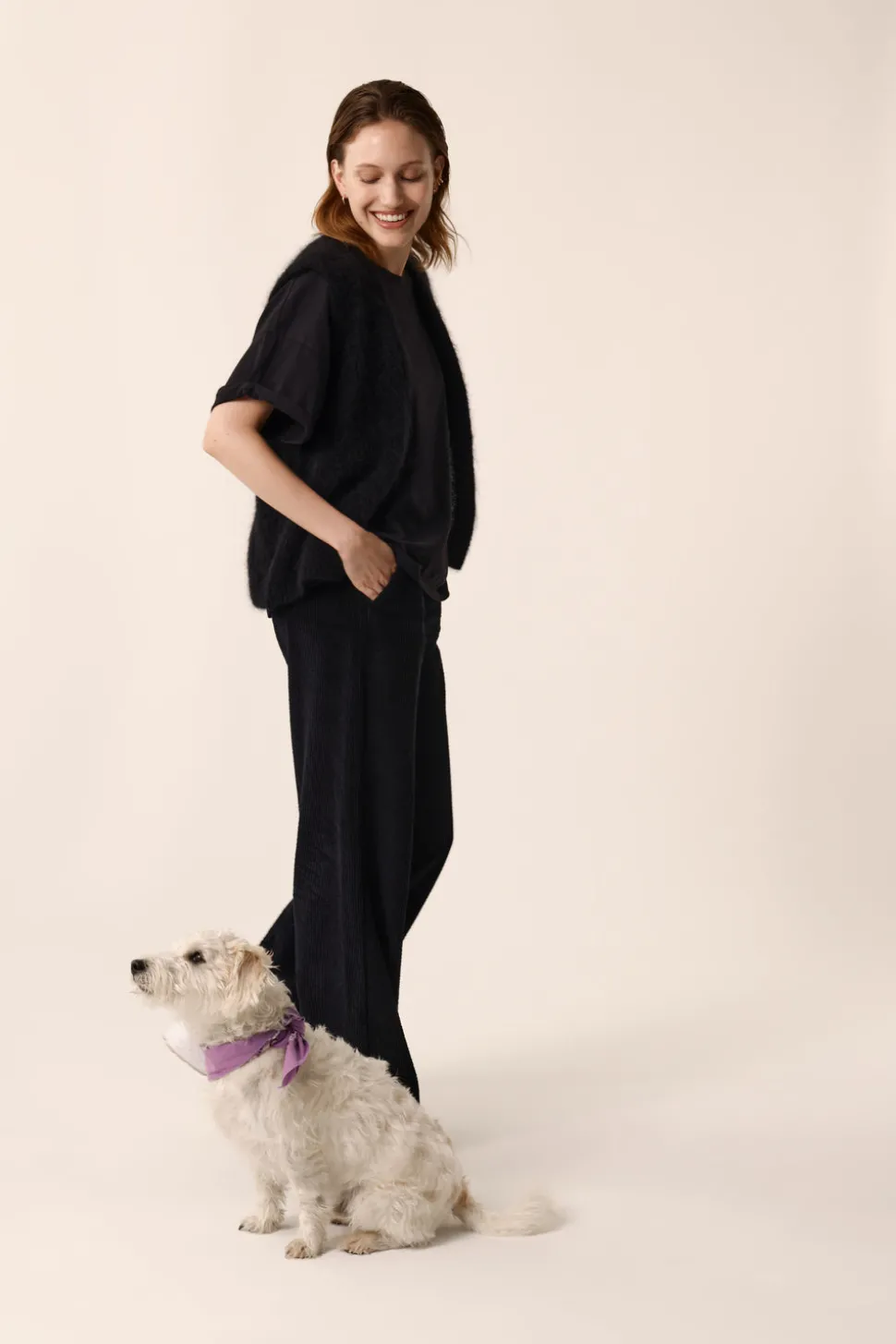 Le pantalon en velours opère un retour remarqué sur la scène mode cette saison. Jambes larges, taille haute et longueur cheville pour un look rétro très en vogue cette saison, vous ne résisterez pas à la coupe chic du pantalon Sialito. • Pantalon large en velours côtelé • Taille haute • Poches italiennes • Ouverture zippée et boutonnée • Coloris Noir : un noir chic et inteporel • Modèle dessiné à Paris par notre styliste • Longueur : 103 cm pour une taille 1 • Jolien mesure 1m76 et porte une taille 1