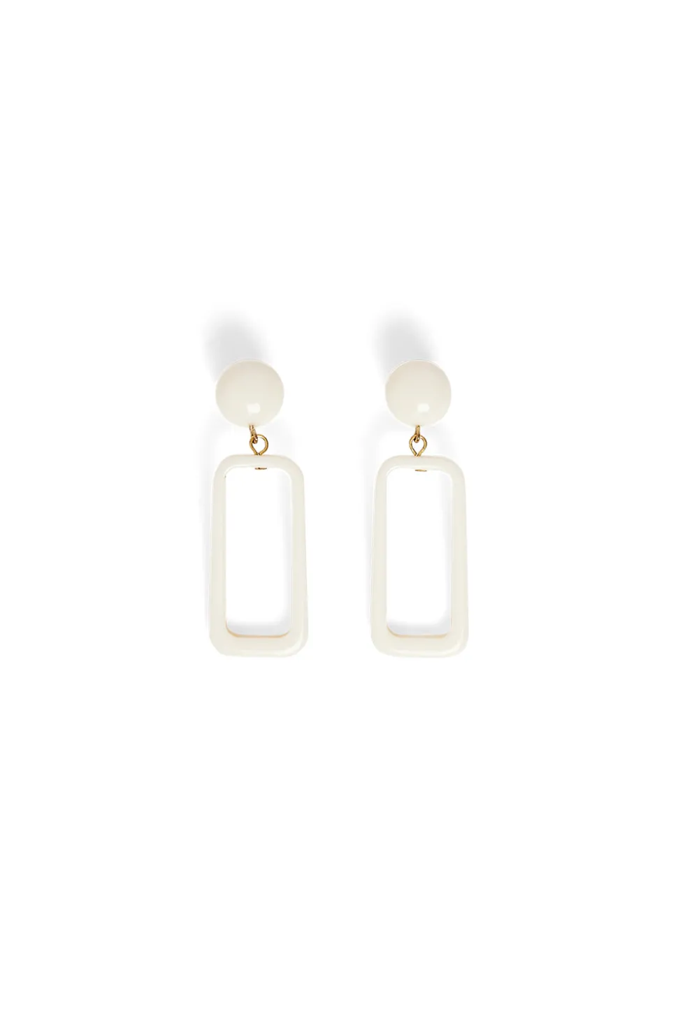 Encore plus graphiques et toujours aussi élégantes, les boucles d’oreilles en résine habilleront tous les visages cette saison. Composées d’une puce bombée et d’un pendant rectangulaire pour un look graphique, les boucles Melouan sont teintées aux couleurs de la collection DPH. • Boucles d’oreilles pendantes en résine • Puce ronde • Pendant rectangulaire ajouré • Finition brillante • Fermoir attache poussoir • Adaptées aux oreilles percées • Coloris Écru : un blanc écru • Longueur totale : 6,5 cm – Ø puce : 1,4 cm| Livrées avec un pochon de rangement • Exclusivité DPH x Feeka