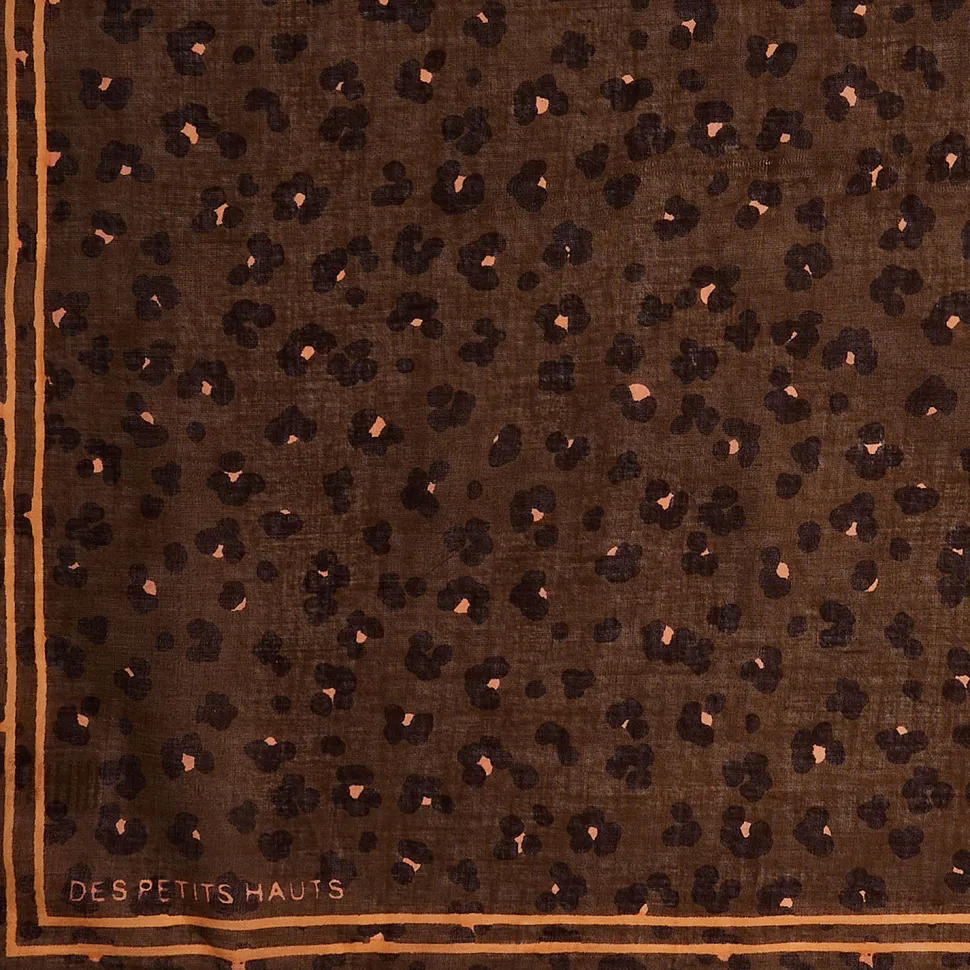 Alternative chic et légère à l’écharpe, le foulard en coton Nuchat s’imprègne de l’univers jungle chic pour l’automne avec son imprimé léopard. • Foulard en coton • Foulard imprimé selon une technique d’impression artisanale au cadre donnant un aspect unique • Imprimé exclusif Des Petits Hauts « Léo kaki » offrant une interprétation contemporaine du motif emblématique léopard dans des nuances de brun et de beige • Modèle dessiné à Paris par notre styliste • Dimensions : 100 x 100 cm • Conseil style : portez-le dès l’entrée de saison avec vos petit hauts préférés