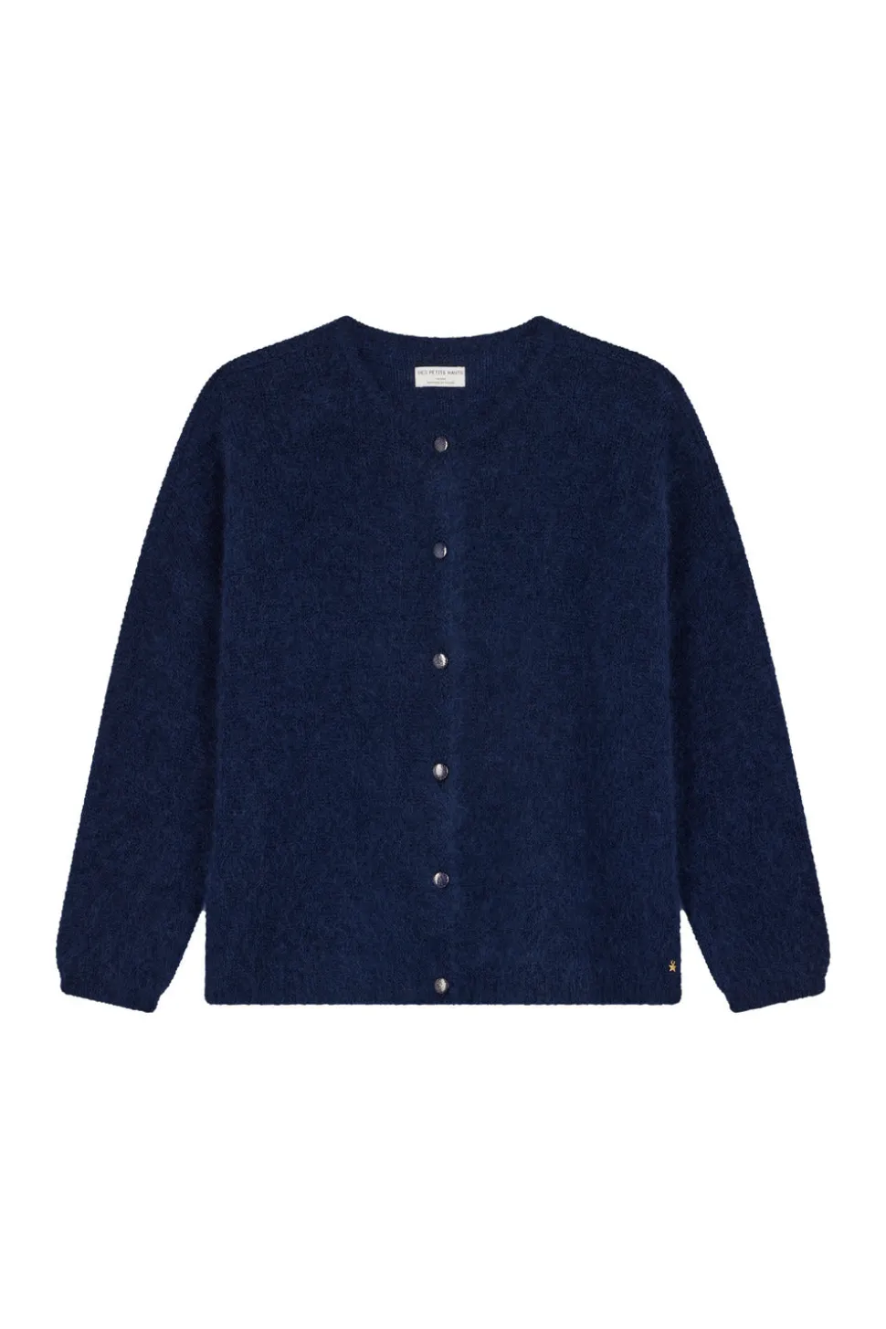 Volume large et droit, matière noble et déclinaison de coloris dans l’air du temps, le gilet Bea séduit par son élégante décontraction. • Gilet droit boutonné volume large • Encolure ronde • Emmanchures décalées • Finitions en bord-côte • Gilet femme réalisé en fil italien du groupe « Moelleux » en Kid Mohair et laine mérinos certifiée sans Mulesing. Fil gonflant, chaud, très doux et duveteux. • Coloris Marine : un bleu nuit intense| Modèle dessiné à Paris par notre styliste • Longueur : 59 cm pour une taille 1 • Jolien mesure 1m76 et porte une taille 1 • Conseil style : portez-le avec le pantalon en velours Loumo et les Mary Jane Phany