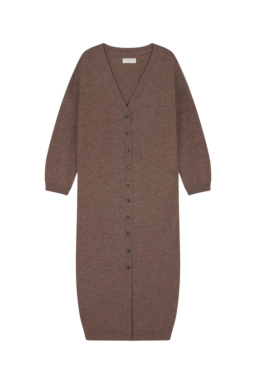 La robe pull Ariette, c’est la robe longue en laine mérinos dans laquelle vous aimerez vous glisser tout l’hiver. Manches longues, encolure V pour un décolleté mis en valeur et légèrement large, son boutonnage façon cardigan apporte un supplément de style à cette robe minimaliste. • Robe longue en laine mérinos volume large • Manches longues • Encolure V • Ouverture boutonnée • Finitions en bord-côte • Robe pull réalisée en fil italien du groupe « Mérinos » en laine Mérinos. Maille épaisse toucher cachemire douce et chaude. • Coloris Galet : un gris avec des touches de beige • Modèle dessiné à Paris par notre styliste • Longueur devant : 120 cm pour une taille 1 • Kryzia mesure 1m70 et porte une taille 1 • Conseil style : portez-le avec un pantalon évasé en velours et des bottines